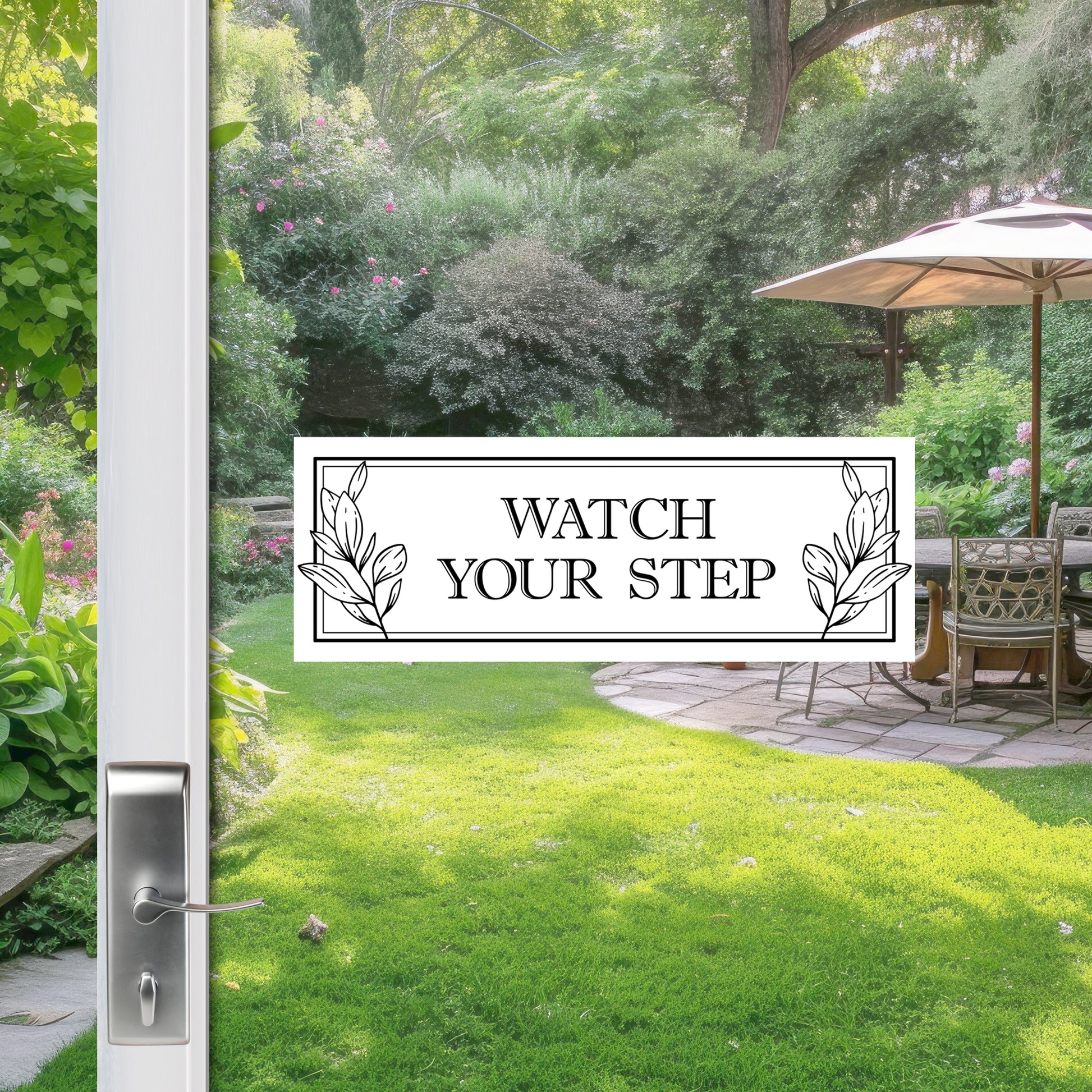 2 Pcs Premium Decals for Glass Doors & Windows (Double-Sided for Glass Only) - Watch Your Step in White